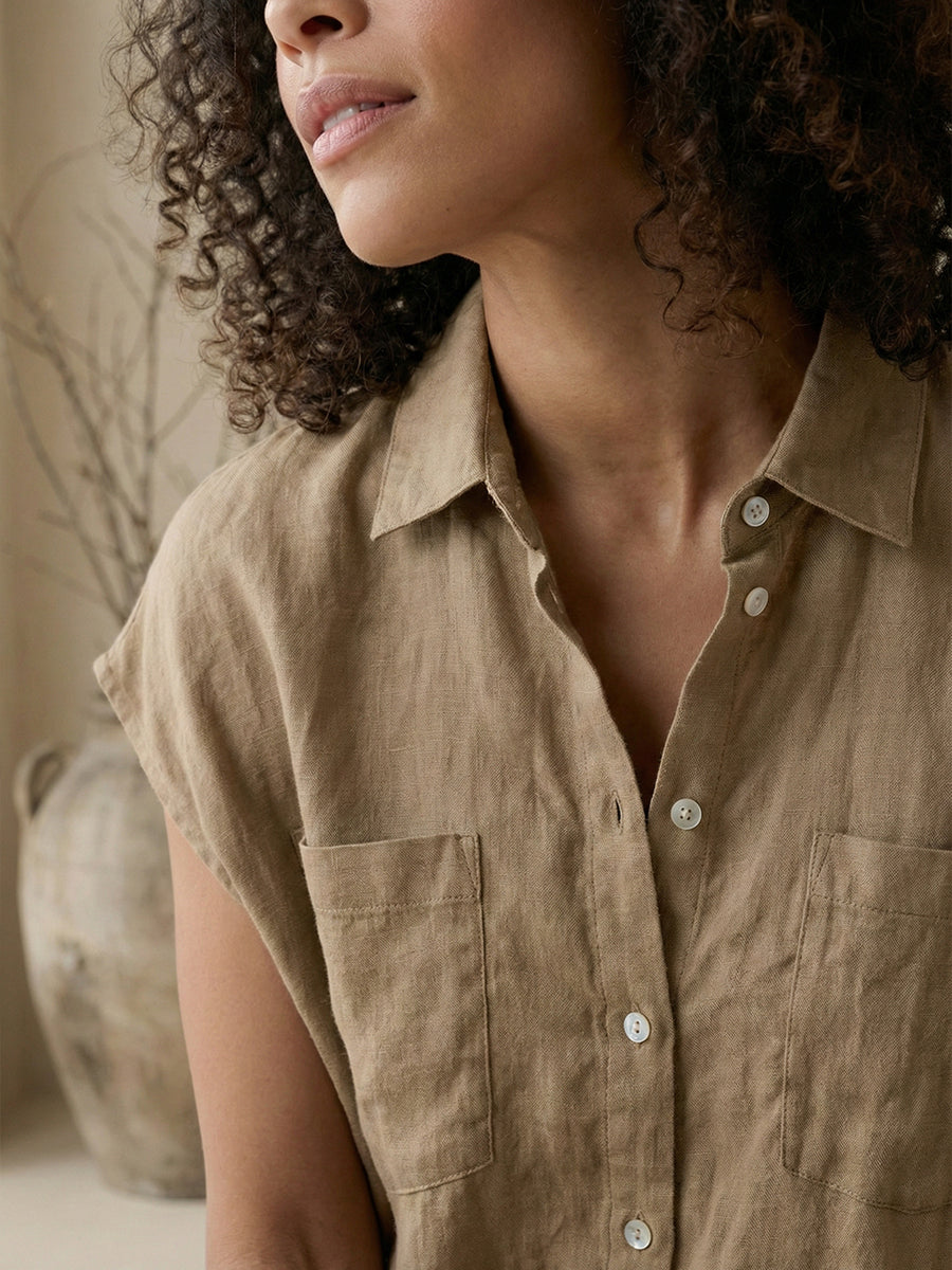 Women’s Linen Blend Sleeveless Wide-Leg Jumpsuit