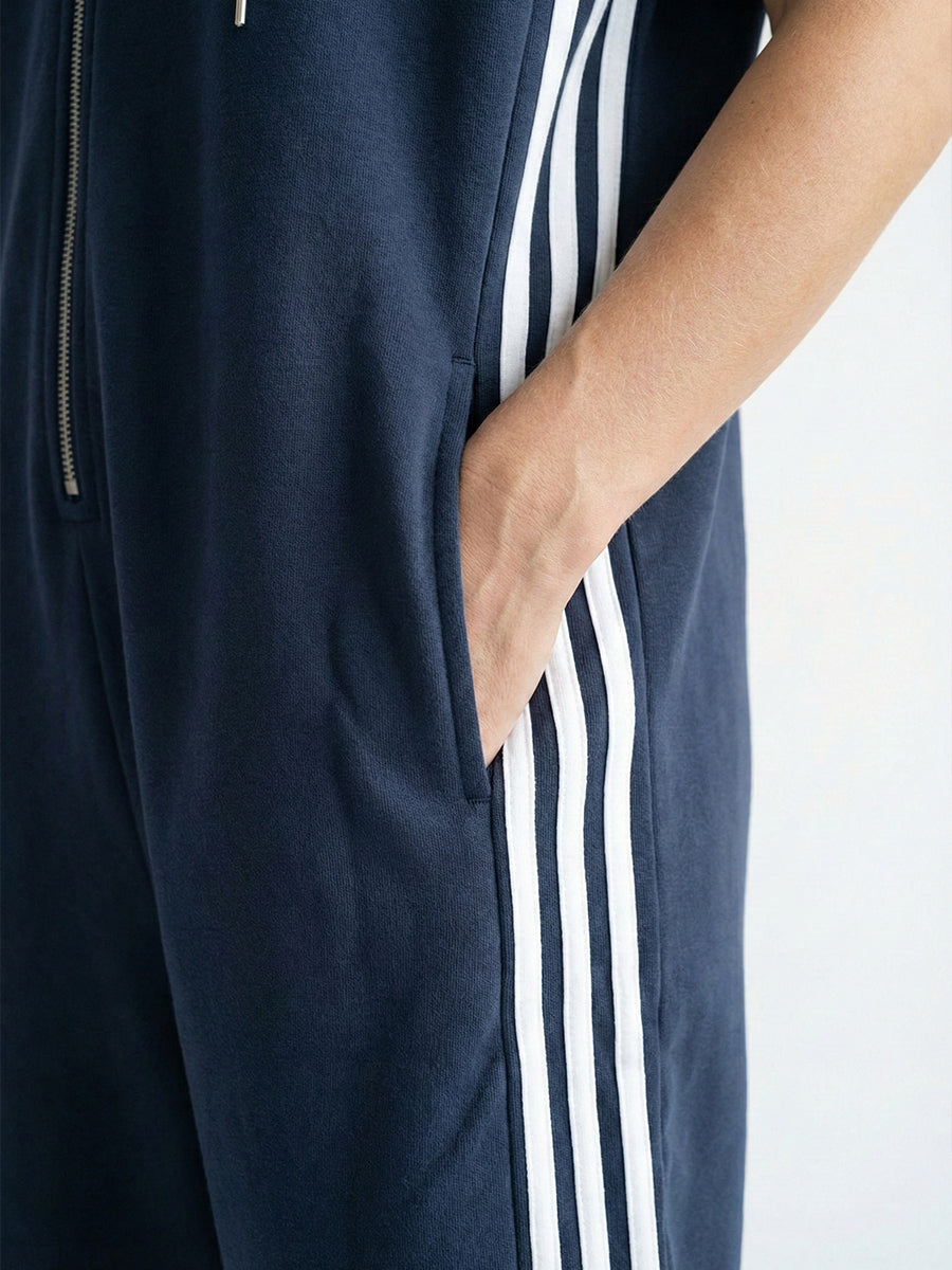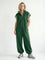 Women's Stand Collar Short Sleeve Cotton Wide-Leg Jumpsuit – Casual Loose Fit