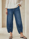 Women's V-neck Long-sleeved Casual Button-up Loose Denim Top