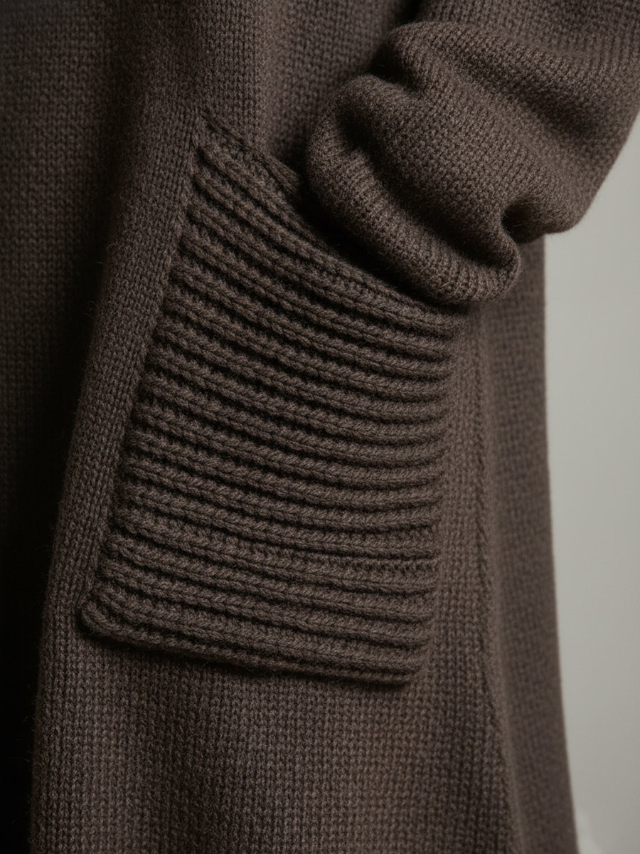 Women's Solid Color High-Neck Long-Sleeve Casual Loose Knit Dress