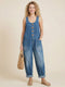Fiorachic Women's V-neck Long-sleeved Casual Loose Denim Top