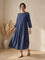 Womens Linen Bateau Neck Pleated Maxi Dress