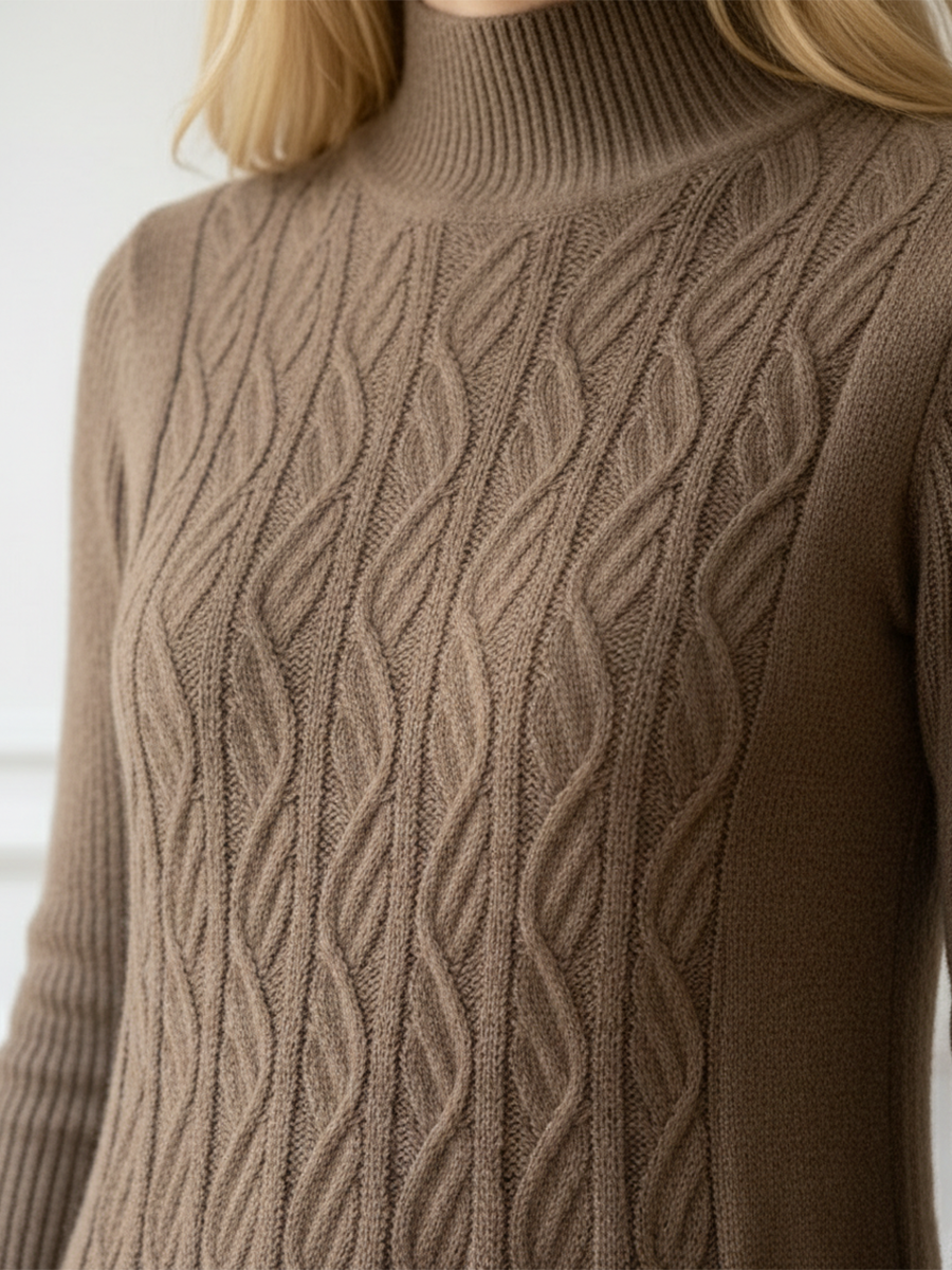 Womens Mid-Collar Loose-Fit A-Line Maxi Wool Dress with Knee-Length Hem