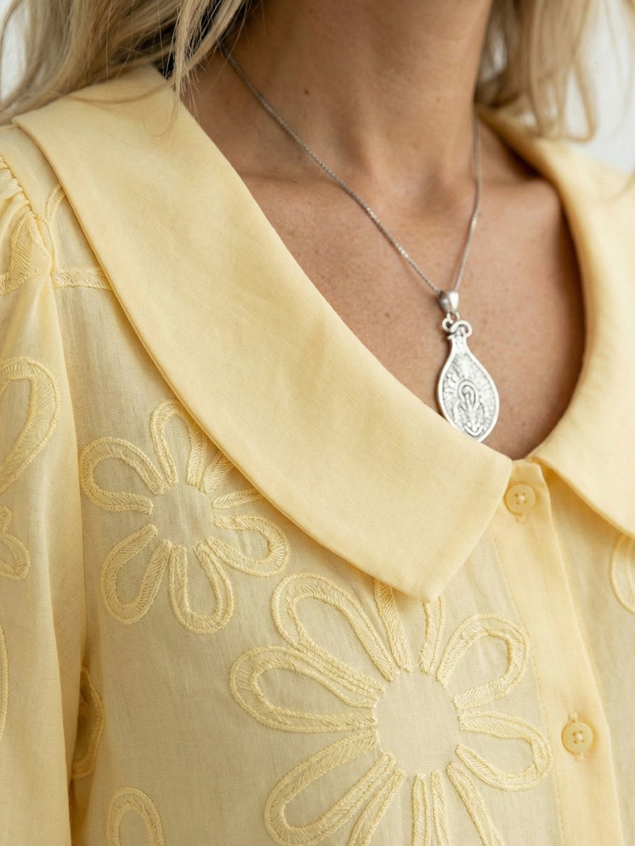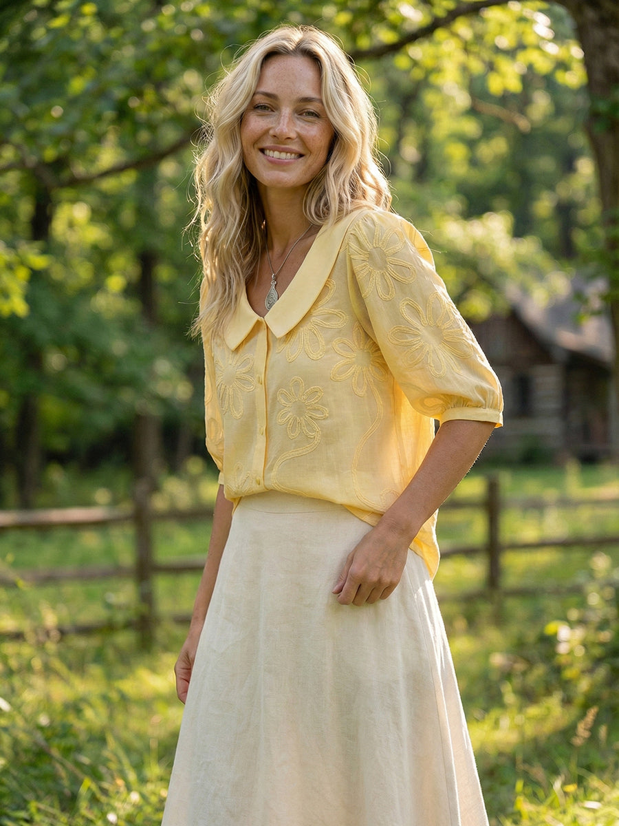 Women’s Vintage Peter Pan Collar Embroidered Floral Shirt